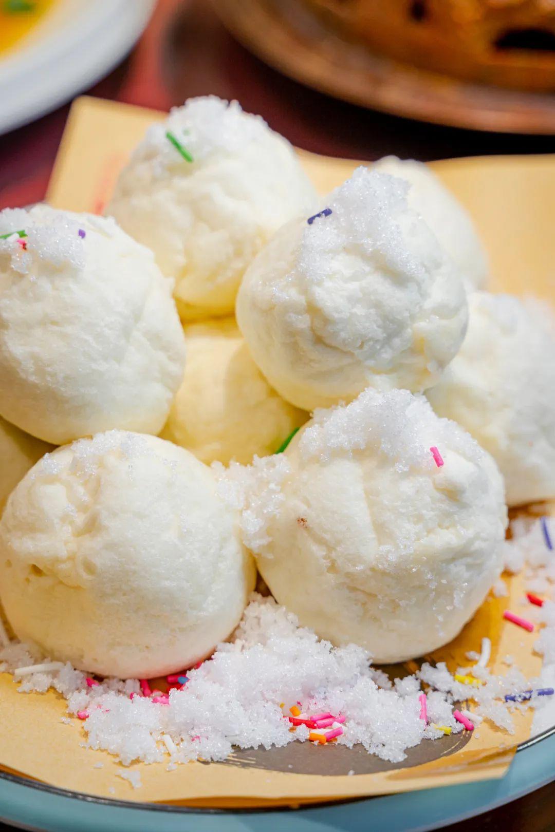 雪白松软的团子,撒上一层绵白糖,就像附了一层轻薄的雪衣,一口咬下去又绵又甜,这新奇的口感,不去东北很难品尝到。