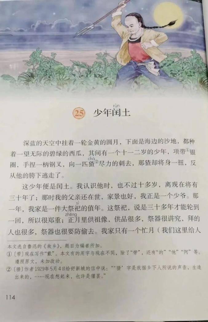 节选自鲁迅小说《故乡》的《少年闰土》,被历套教材选入,是小学生最熟悉的鲁迅作品。