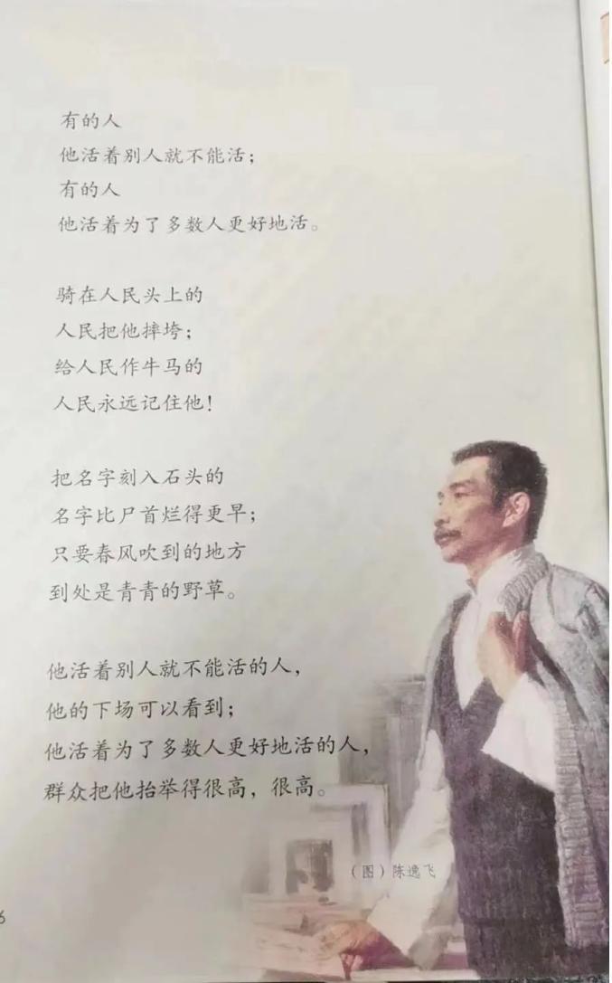 臧克家的诗作《有的人——纪念鲁迅有感》,赞颂鲁迅为人民无私奉献的伟大精神。