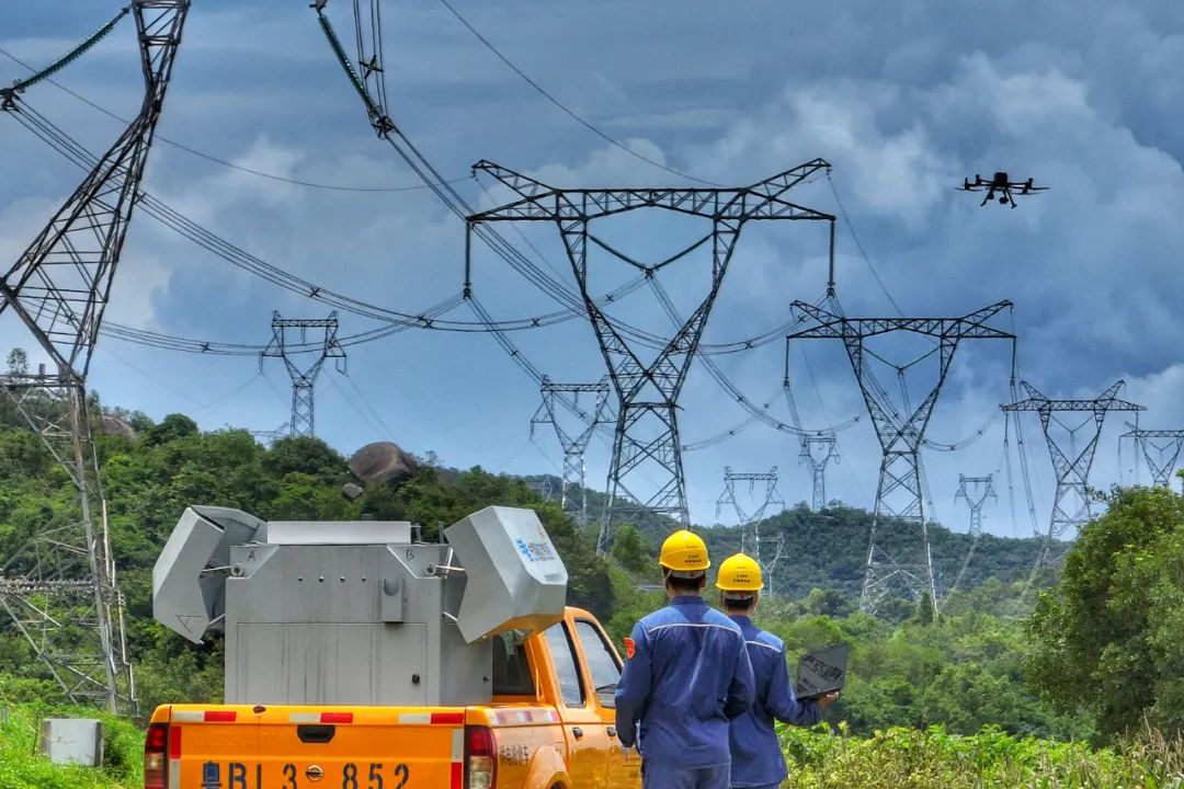 ▲为保障对港送电线路安全稳定运行,南方电网深圳供电局输电线路运维人员利用车载移动机巢搭载无人机群对400千伏核深线进行特巡特维。李志杰 摄