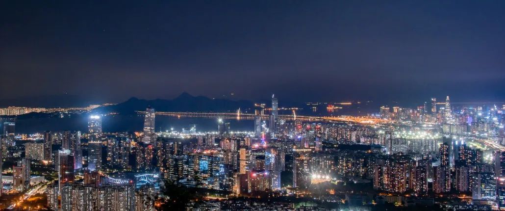 ▲在深圳塘朗山向香港方向望去,可见深圳湾大桥跨过深圳湾将两地相连,远处香港元朗热闹的居民区,与深圳南山区璀璨的灯火交相辉映。黄海鹏 摄