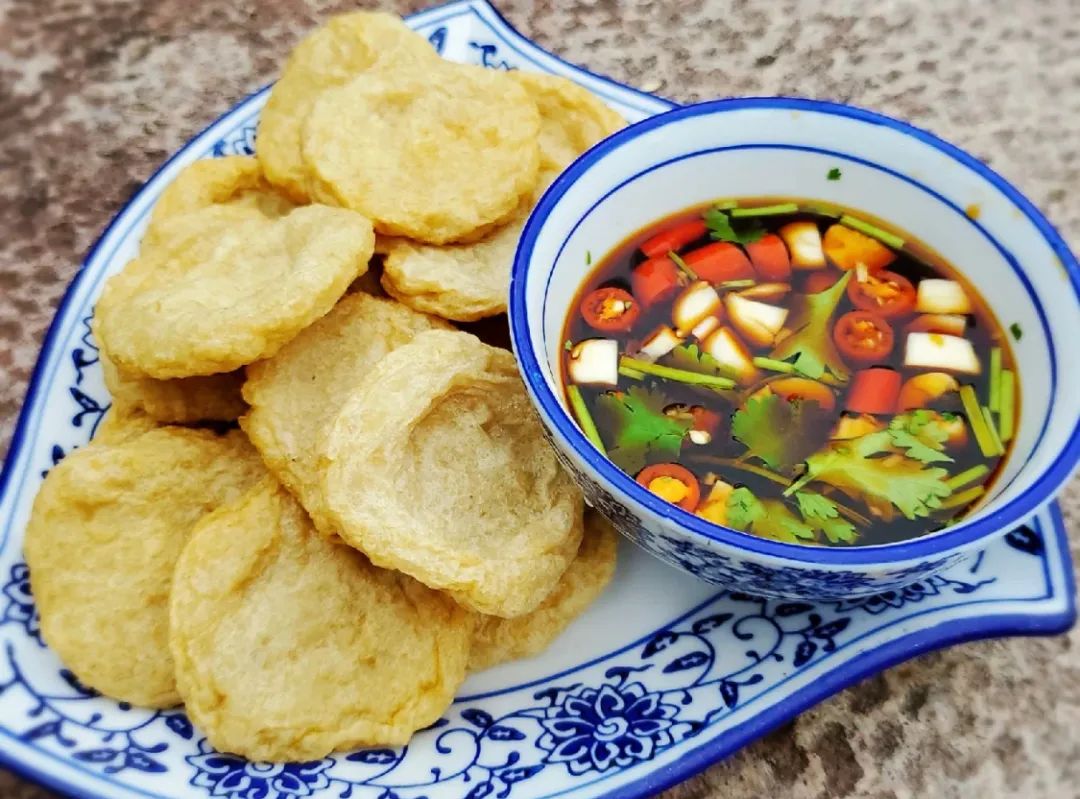 早在《随园食单》里调剂须知一则里就有讲道:有物太腻要用油先炙者,有气太腥要用醋先喷者。而对于蘸食鱼饼的醋汁选择,我更多是偏执于本地的花椒米醋。