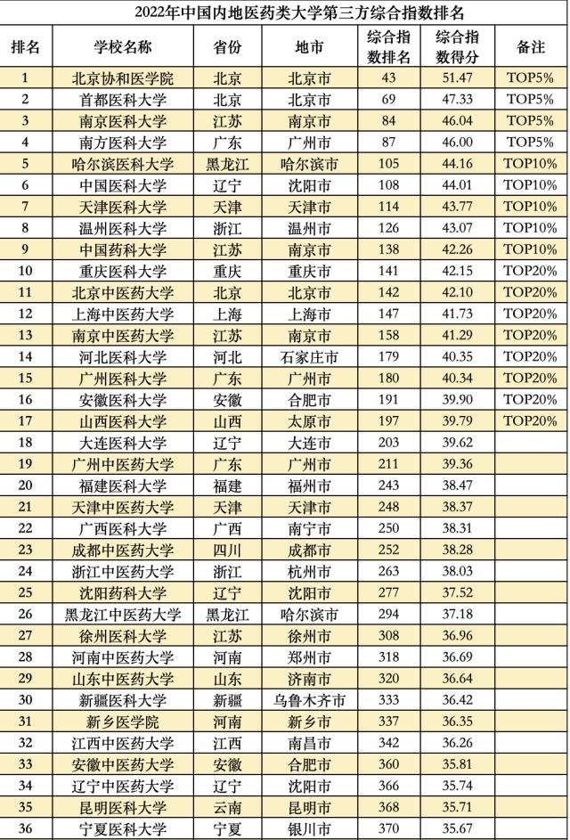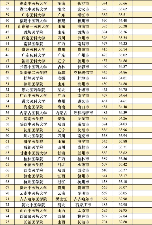 北京协和医学院、首都医科大学、南京医科大学、南方医科大学、哈尔滨医科大学