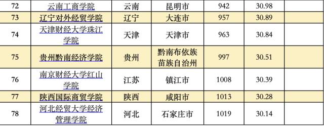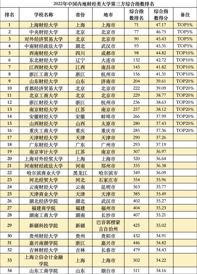上海财经大学、中央财经大学、对外经济贸易大学、中南财经政法大学、西南财经大学