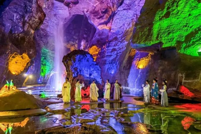 三个特大特长的万米溶洞使得龙鳌河风景名胜区山水风光与历史人文景观形成绝妙组合。蜿蜒的龙鳌河河床深凹,沿河两岸群山耸立,绿树翠竹、高山流水、凌空飞瀑、壁间喷泉,景象万千,各具特色。