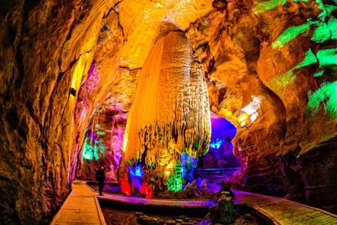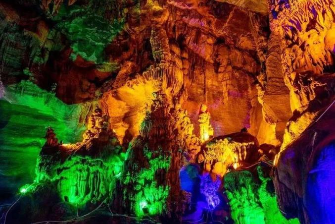 玉门洞内景观奇特,南北而望,斗折蛇行。钟乳石千姿百态,“壁挂乳石瀑,顶悬玉石灯”,仿佛一幅幅栩栩如生的风景画。