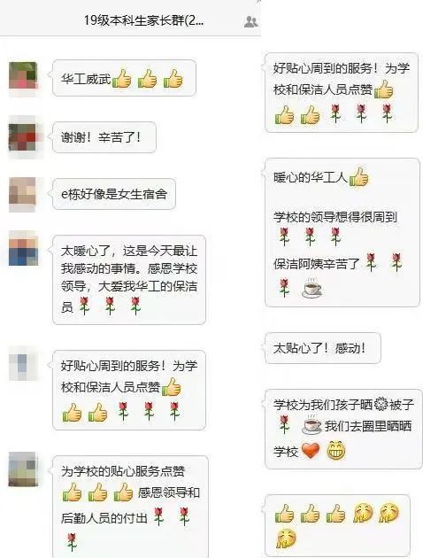 同样在2020年的疫情期间,学生们按照要求不能返校。眼看着广州进入回南天,学生们挂在阳台上的衣物会不会被淋湿?宿舍里面的被子会不会受潮?辅导员、宿舍管理员们及时返岗,征得学生同意后,帮助大家收拾阳台上的衣物、晾晒被子,还“云端接单”,给学生照顾绿植、寄送课本、宿舍通风,细心的服务让隔离在家的同学们感到十分温暖。
