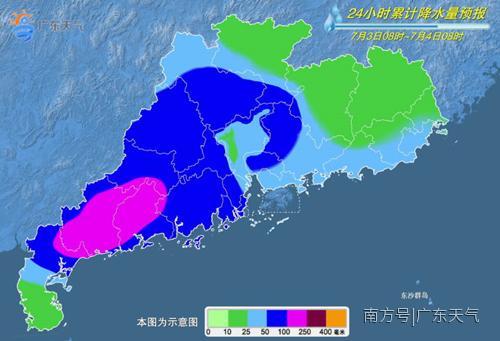 3日,粤西、珠三角、韶关、清远有暴雨到大暴雨局地特大暴雨;粤东有大雨到暴雨局部大暴雨,其余市县有中到大雨局部暴雨。