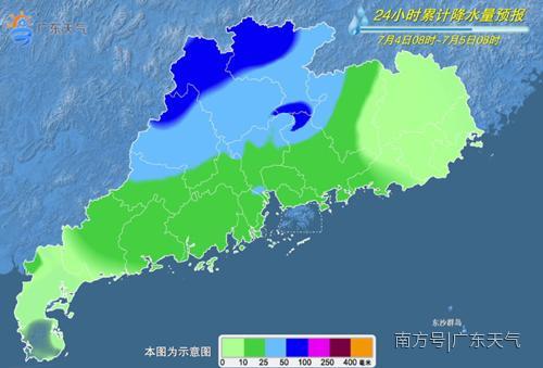 4日,韶关、清远、珠三角和粤西的北部市县有大雨到暴雨局部大暴雨,其余市县有中雨局部大雨。