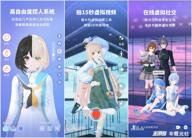 在波粒子推出的首款虚拟社交软件“Vyou微你”中,用户可以通过3D捏脸换装功能,创建自己的虚拟形象,通过手机前置摄像头及麦克风捕捉面部表情及声音,并与虚拟世界中的好友进行合影等社交互动。