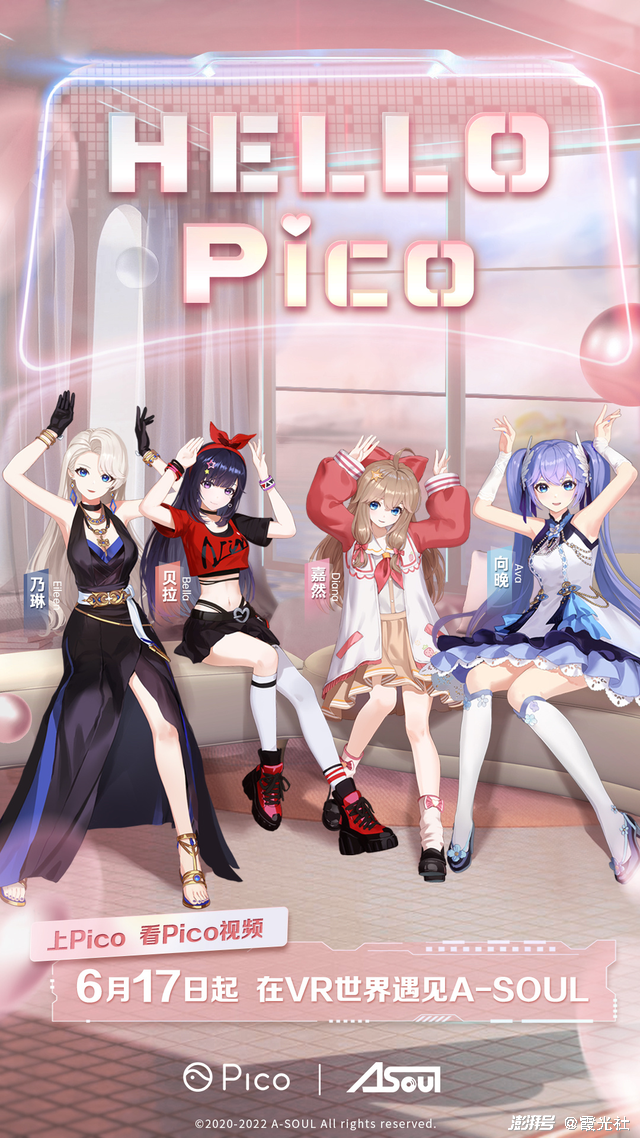 而这些“虚拟偶像”,不时为字节元宇宙生态中的各个环节 “串场”。A-SOUL日前入驻了Pico平台,并举办了首场VR夜谈。而在字节自研的大型手游中,也可以见到A-SOUL和李未可以“虚拟偶像”身份,为游戏宣传站台。