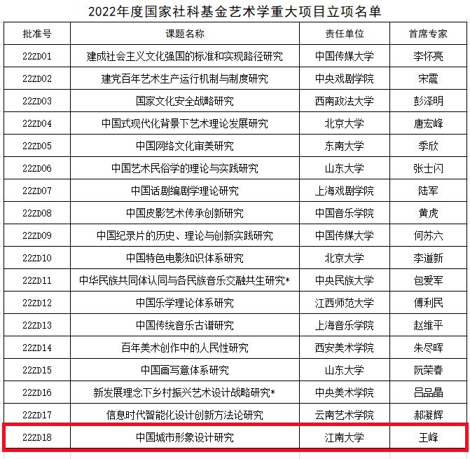 据悉,国家社科基金艺术学重大项目是现阶段国家社科基金艺术学单列学科中层次最高、资助力度最大、权威性最强的项目类别。2022年国家社科基金艺术学重大项目共立项15所高校的18个项目,其中北京大学、山东大学、中国传媒大学各有2项,其他高校有1个项目入选。此次国家社科基金艺术学重大项目的获批立项,有利于进一步凝练我校艺术学科特色,对推动我校科研工作高质量发展具有重要意义。
