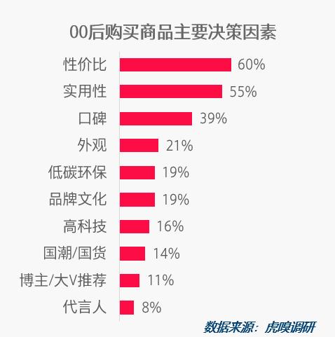 00后买东西最看重性价比和实用性,会充分考虑商品价值和使用频率,自动忽略产品外观、宣传和代言人。