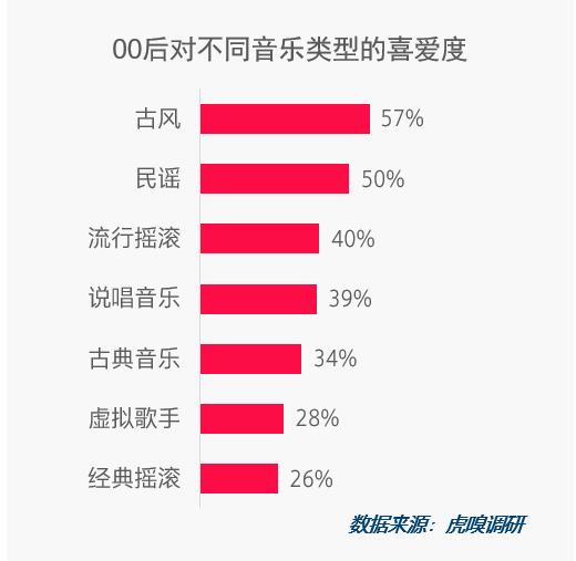 00后最爱听古风和民谣这种平静的音乐类型。