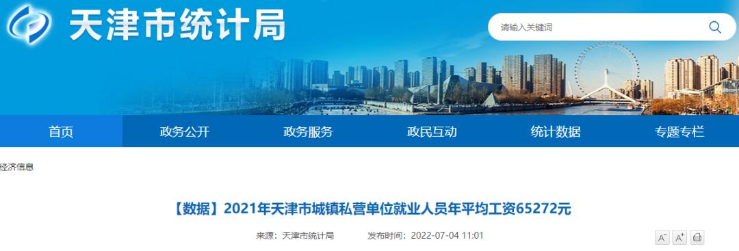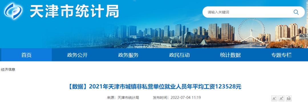 今天(7月4日),天津市统计局网站发布了2021年天津市城镇非私营单位和天津市城镇私营单位就业人员的年平均工资数据。分别为123528元和65272元。