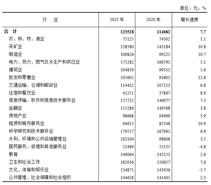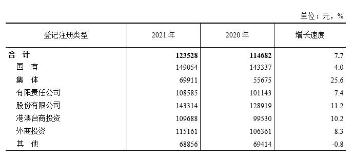 2021年天津市城镇非私营单位就业人员年平均工资为123528元,比上年增加8846元,名义增长7.7%,增速比2020年提高1.5个百分点。扣除价格因素,2021年天津市城镇非私营单位就业人员年平均工资实际增长6.3%。