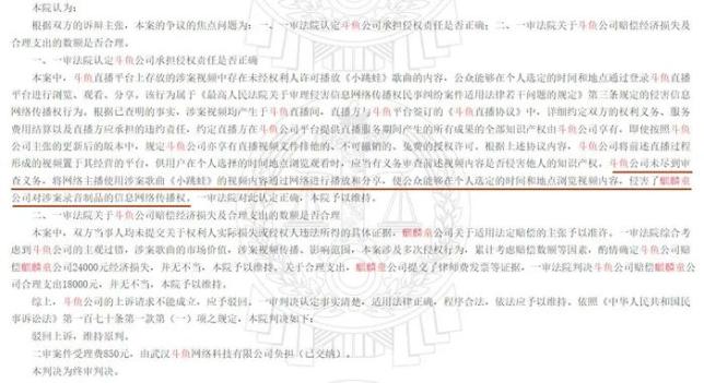 去年10月,北京知识产权法院审结斗鱼公司与麒麟童公司侵害著作权纠纷一案,最终改判斗鱼公司赔偿麒麟童公司经济损失2.9万元及合理开支1.2万元。