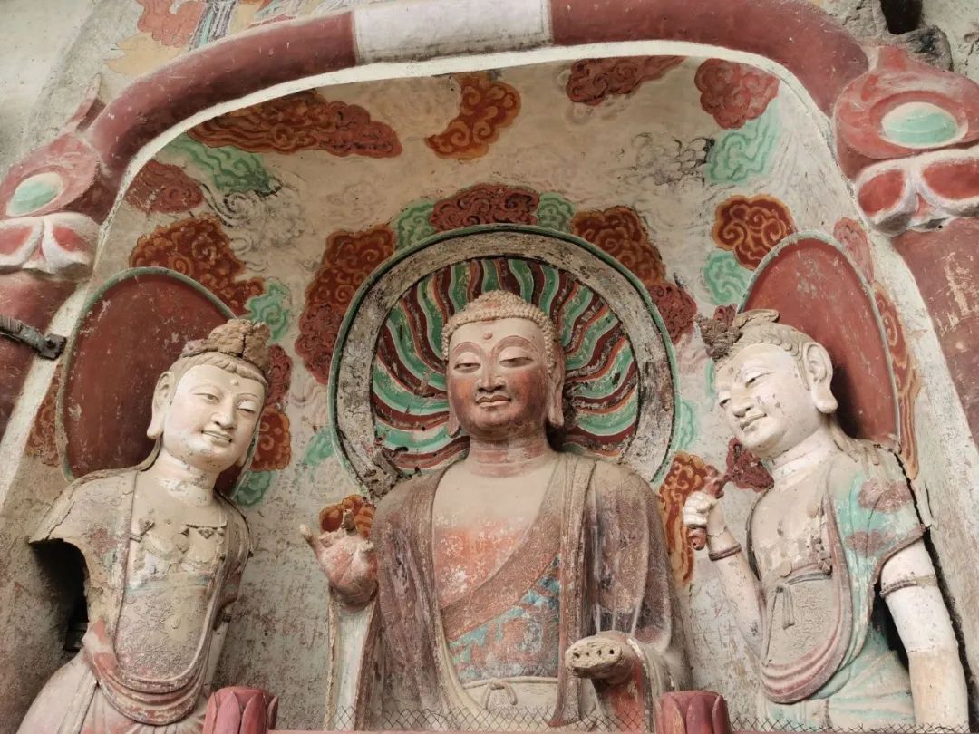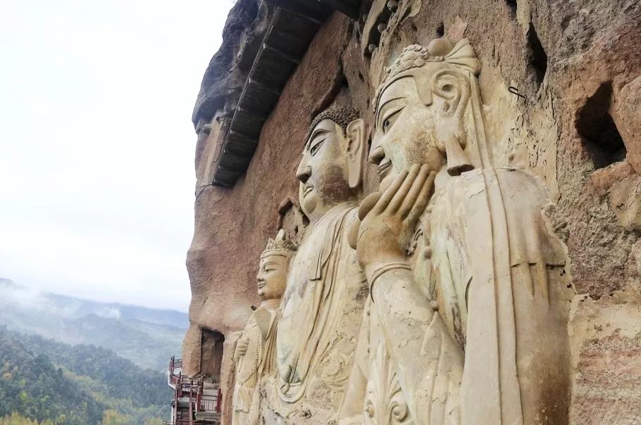 麦积山石窟,始建于公元384年五胡十六国后秦时,是中国四大石窟中唯一一个十二朝无断代作品的石窟。