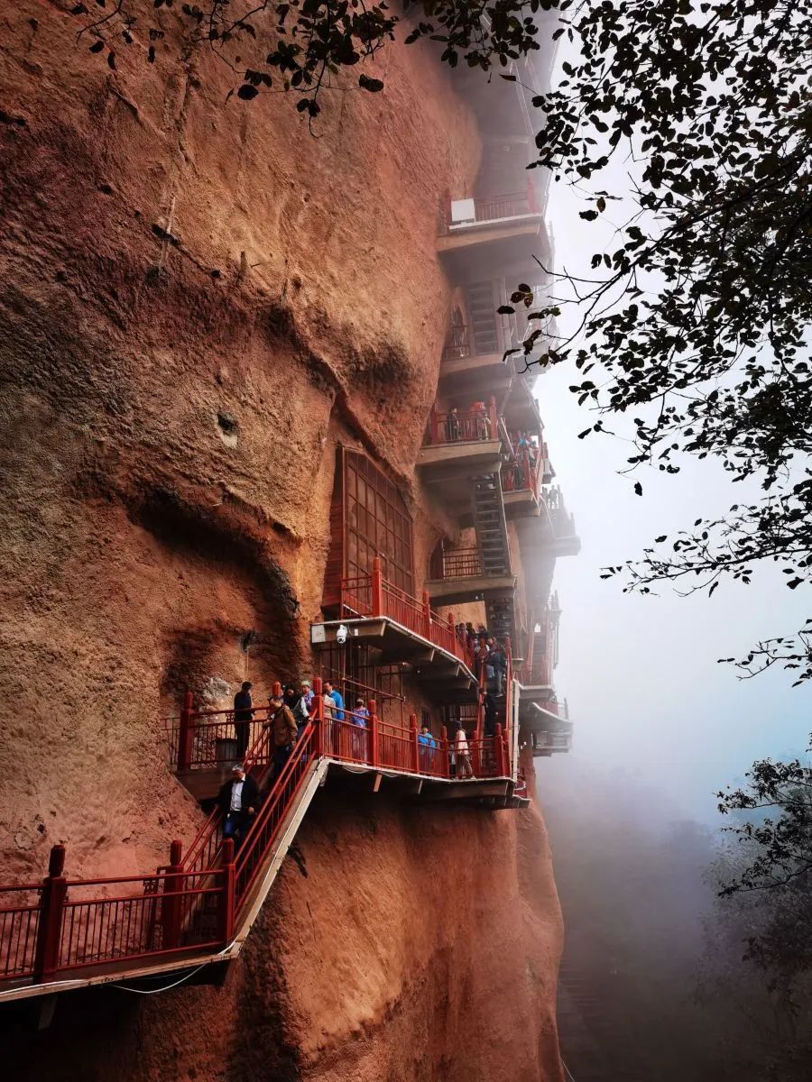 参观麦积山石窟允许带包和相机,无须 寄存。