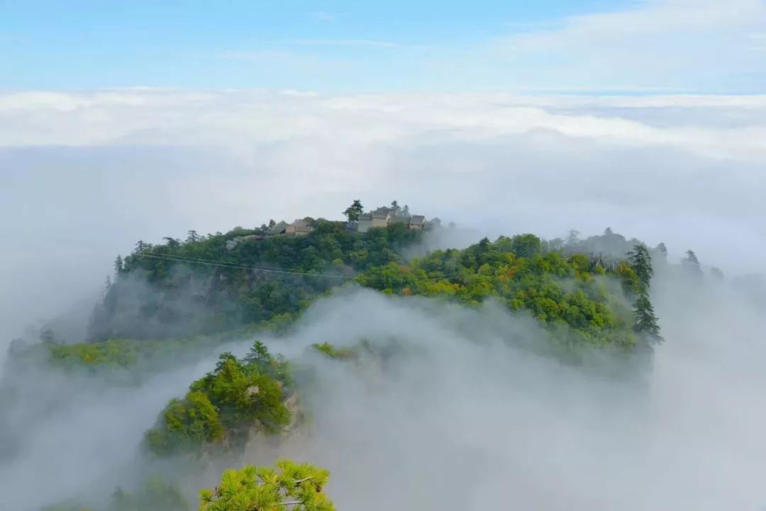崆峒山的云海是最具灵气的景致,被誉为崆峒山美景的魔术师。夏日雨水多,自然酝酿出的薄薄云海也格外洒脱、清丽。