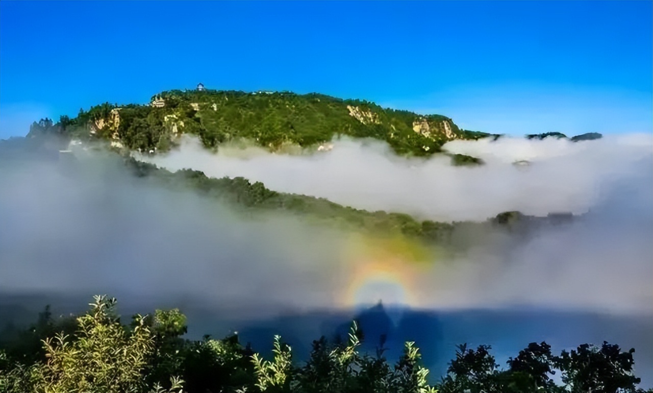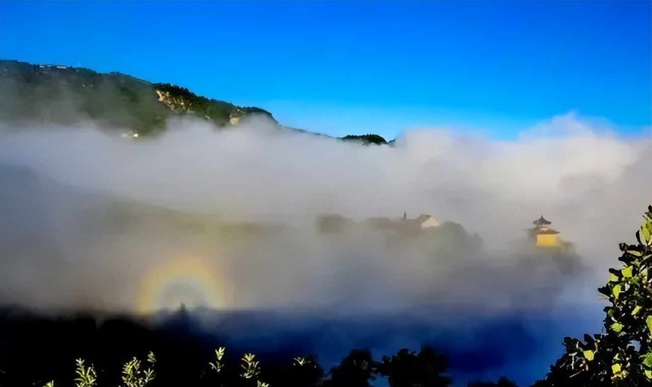 佛光,是夏季一种难得的自然景观,在崆峒山得遇佛光不但是幸运的,也说明与崆峒山有缘。七色的佛光,内蓝外红,绚丽神奇,与奇松、怪石相映争辉。