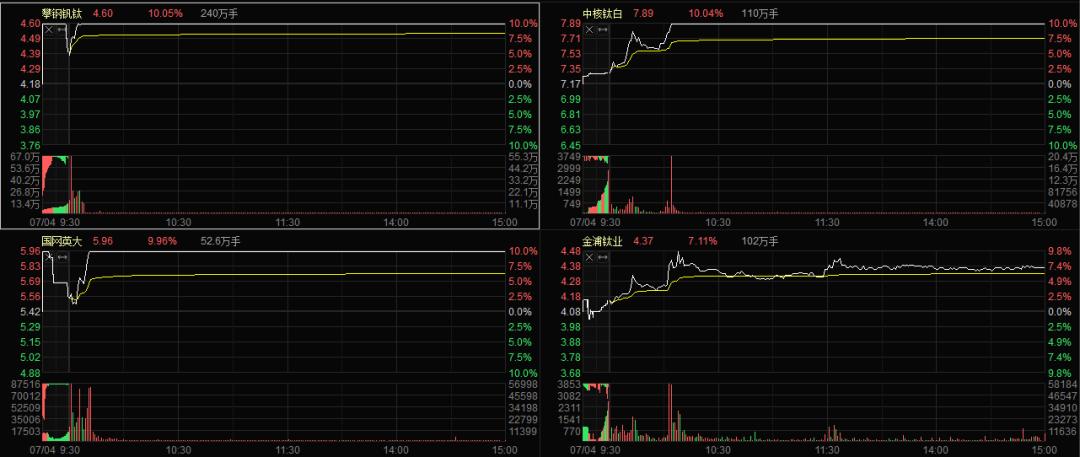 今日(7月4日),A股液流电池板块大涨,攀钢钒钛2连板,中核钛白、国网英大涨停,固德威、金浦钛业、明星电力、振华股份、西子洁能等多股跟涨。