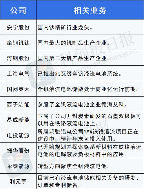 在液流电池产业化的过程中,电池端和材料端的相关企业都将充分受益。