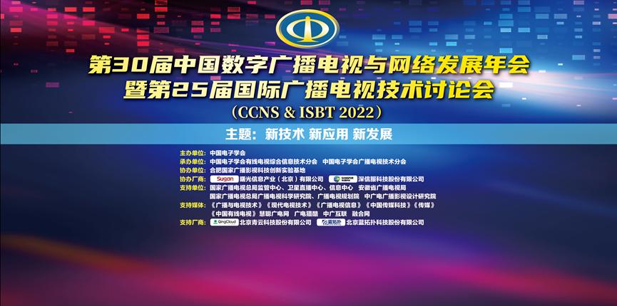 因疫情而延期的“第30届中国数字广播电视与网络发展年会暨第25届国际广播电视技术讨论会” (简称CCNS & ISBT 2022 )将于8月1-3日(1日报到)在安徽合肥举办,会议的主题是“新技术 新应用 新发展”。