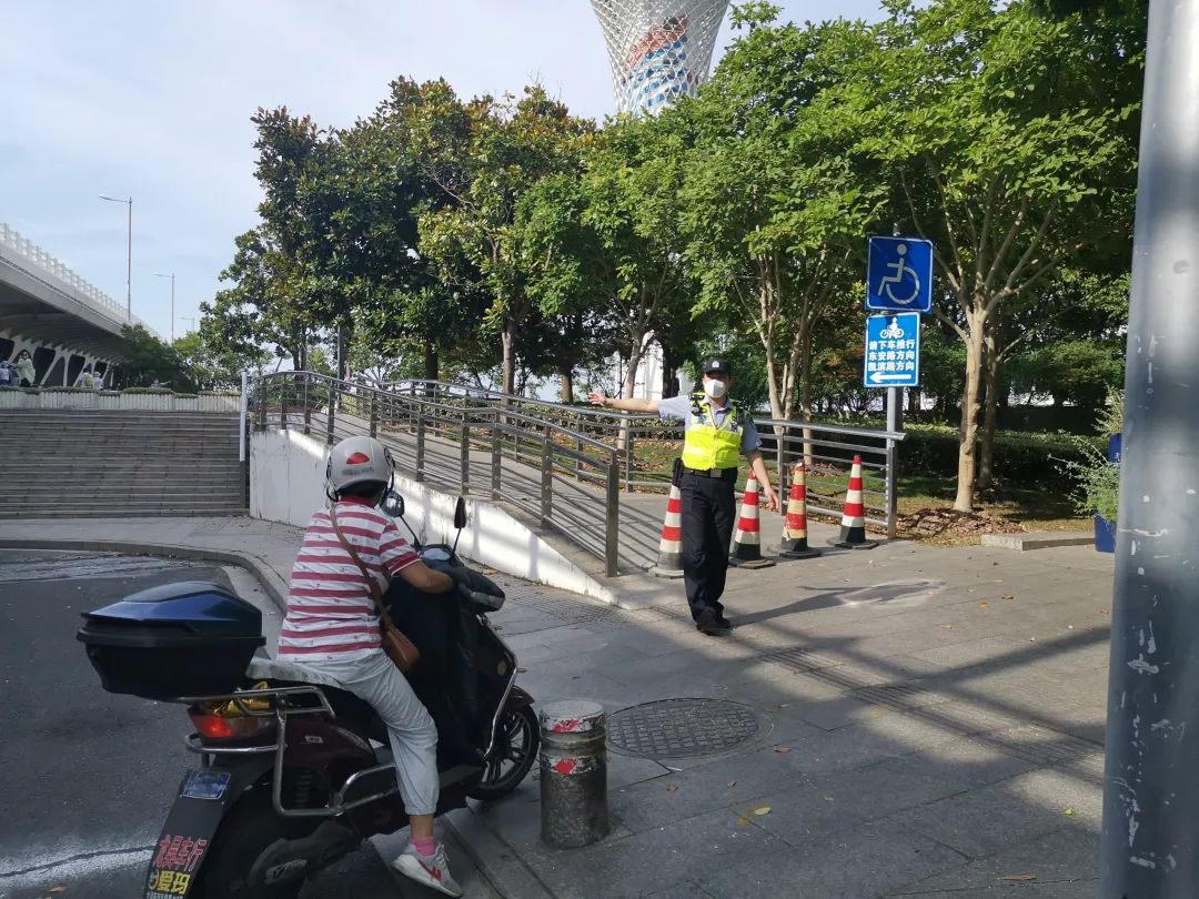 大客流期间,民警示意非机动车绕行