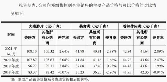 不仅如此,机会宝发现,在定价上,紫燕食品对邓绍斌及谢斌控制企业的产品售价几乎都高于其他所有经销商。
