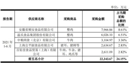 据悉,安徽顺安成立于2016年6月,在报告期内均为紫燕食品的前五大供应商之一。2018~2021年上半年,紫燕食品对安徽顺安的采购金额分别为5150.10万元、6329.02万元、13972.56万元和7966.84万元。