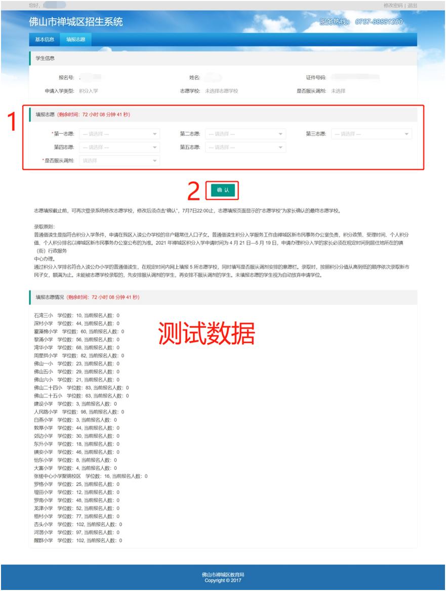 温馨提示:7月7日22:00后,招生报名系统将自动关闭,并封存志愿。未在规定时间内登录系统填报志愿的,视为放弃禅城区公办小学学位,区教育局不再安排学位。