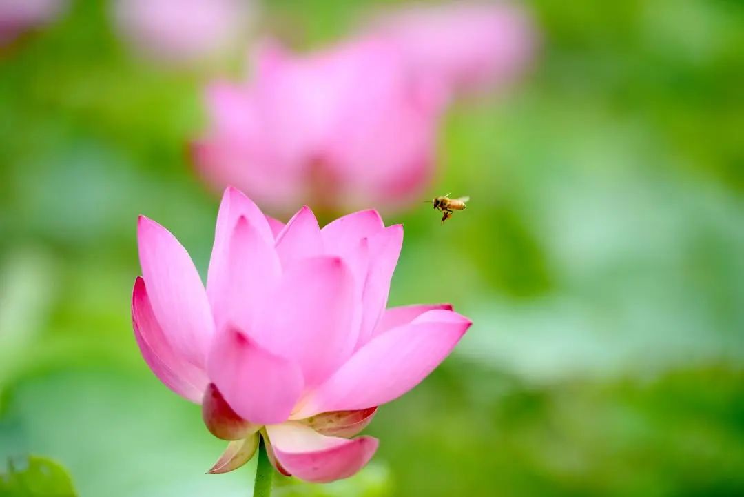 使用较慢的快门速度拍摄,可以拍出荷花的朦胧之美。