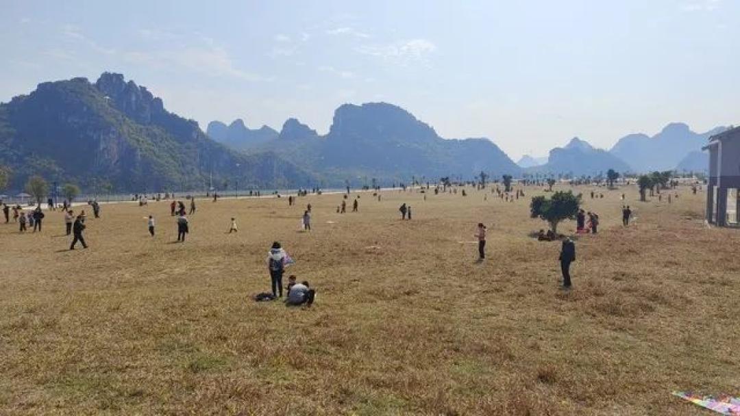 优化城区环境。图为武宣县群众在王阳明公园放风筝。