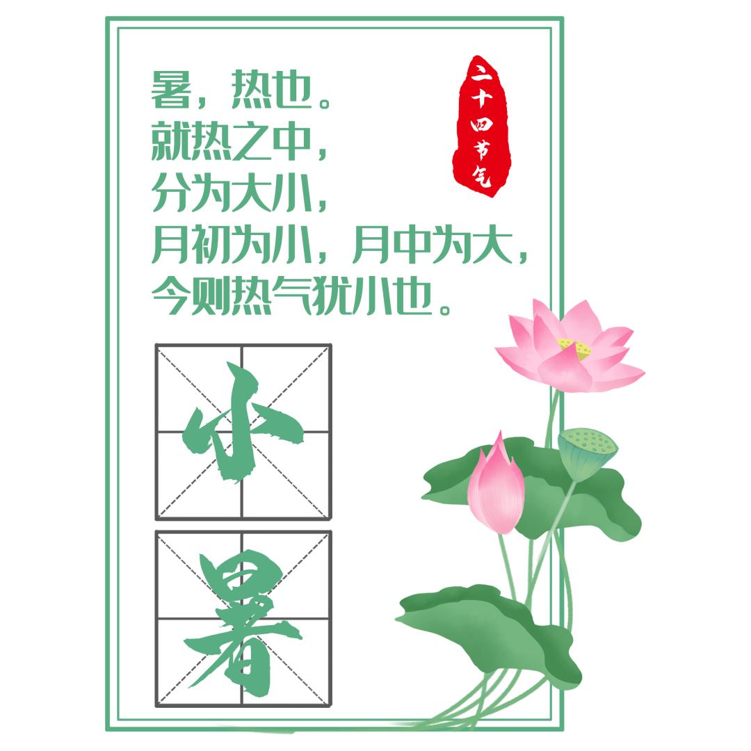 小暑,二十四节气之第十一个节气,是干支历午月的结束以及未月的起始,于每年公历7月6—8日交节。暑,是炎热的意思,小暑为小热,还不十分热。意指天气开始炎热,但还没到最热。小暑虽不是一年中最炎热的季节,但紧接着就是一年中最热的季节大暑,民间有“小暑大暑,上蒸下煮”之说。我国多地自小暑起进入雷暴最多的时节。