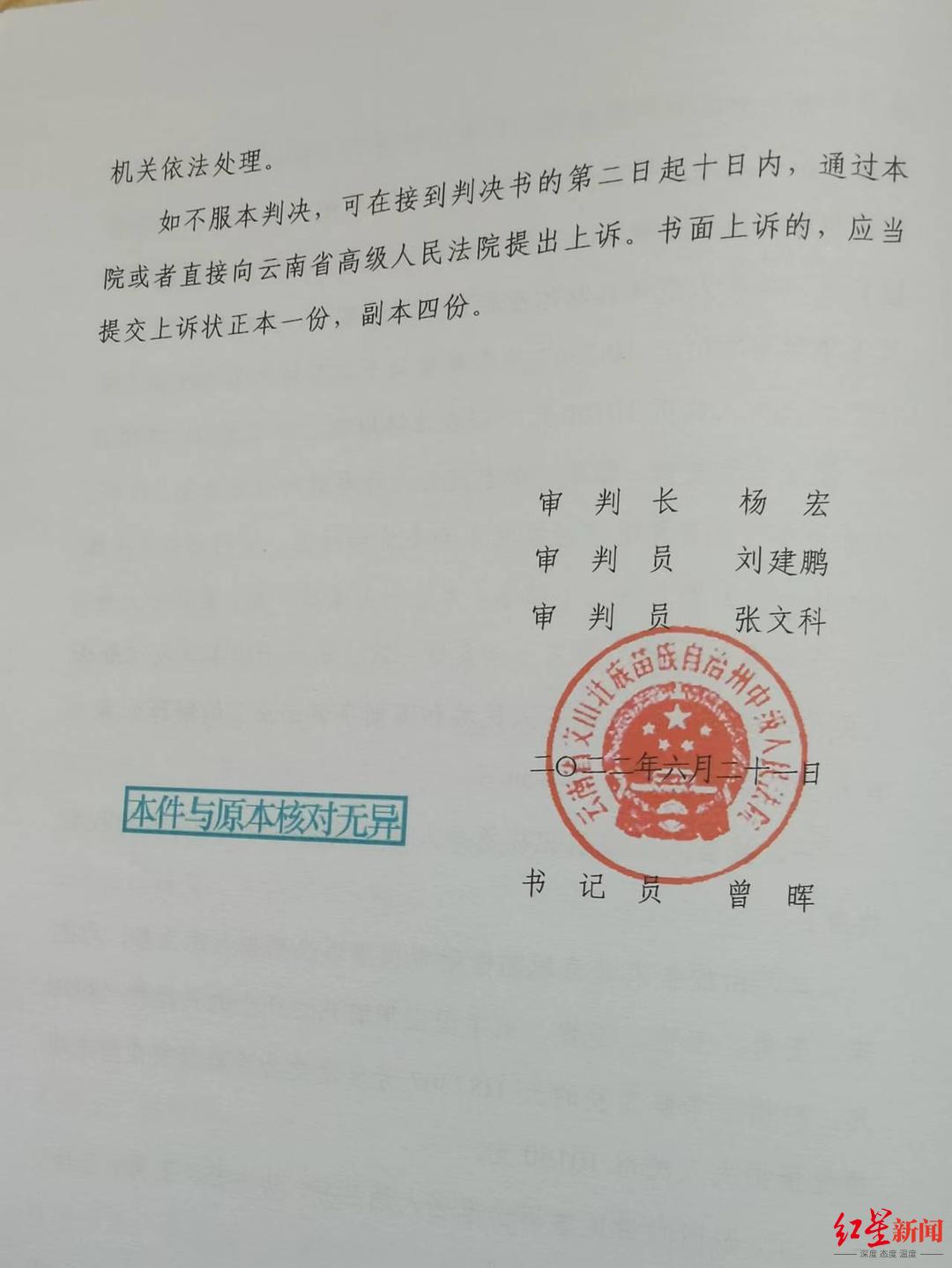 7月8日,受害者王华聪的家属马杰芳告诉红星新闻记者,此次判决未公开宣判,云南省文山壮族苗族自治州中级人民法院工作人员将判决书交至其手中。