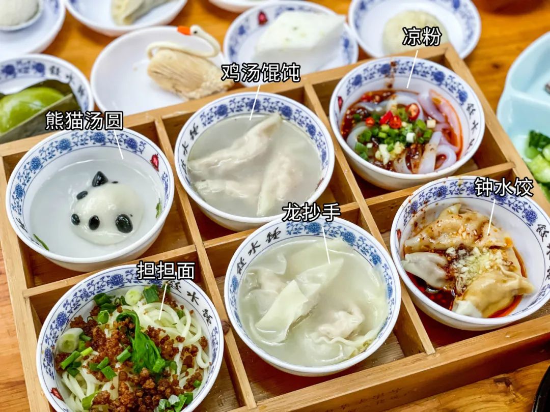 熊猫汤圆、凉粉、担担面、卤菜、小龙虾等