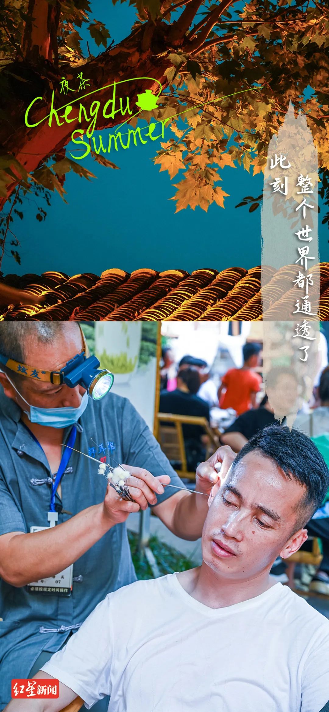 采耳师傅从人群穿过,手中耳钳摇得叮铃哐啷