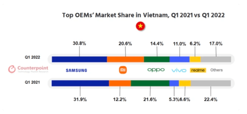 月度越南市场份额追踪报告 图源:Counterpoint Research