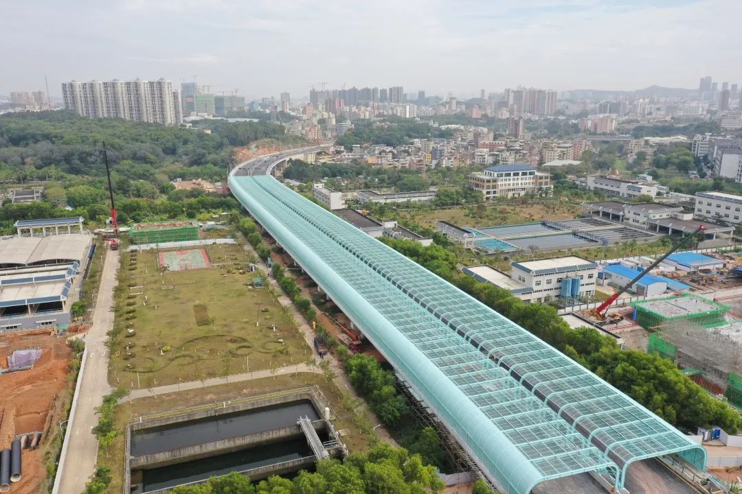 由于项目穿过茜坑水库蓝线,为保护水库生态环境,设计桥梁578米,采用了悬臂浇筑施工工艺,其中主跨长达98米,最大程度减少墩柱空间占用。
