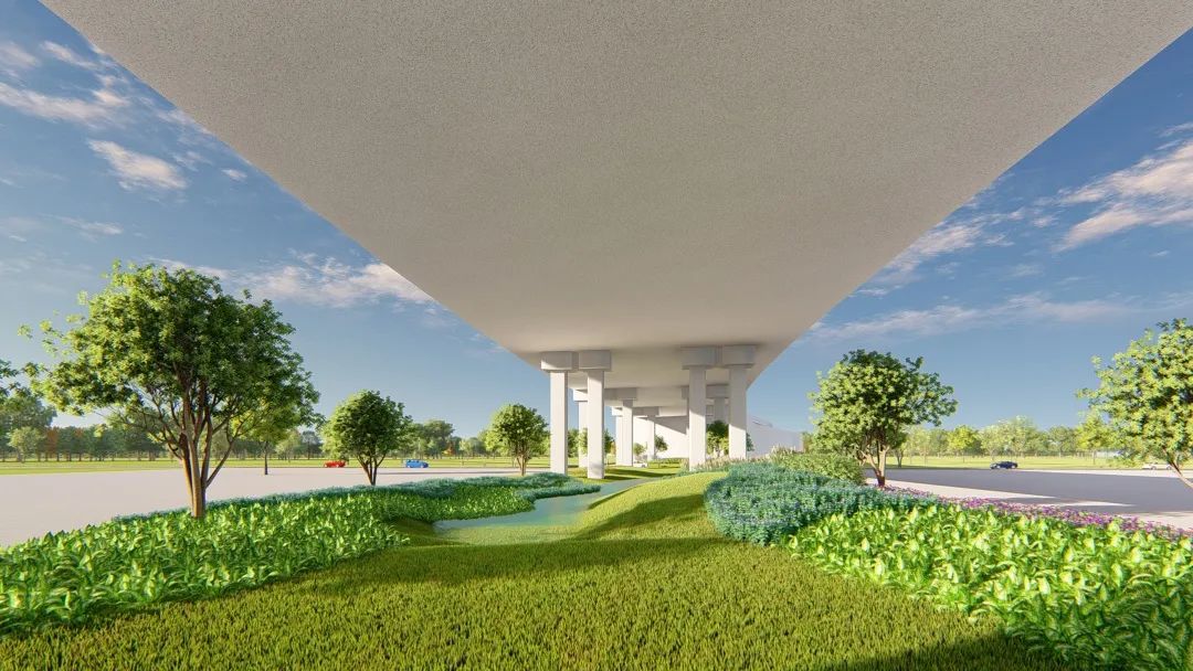 观天路项目将“生态优先、绿色发展、文明和谐”作为工作原则,坚持预防为主、环保优先、施工与保护并重。通过设置直立式桩板墙,沿线避免开挖面积约14500平方米,有效保护了植被和生态环境。同时,在桥上设置防抛设施,保护桥下生态,桥中改防撞墙为绿化景观带,桥下采用微地形开展城市湿地设计,兼顾桥梁景观和环境保护。