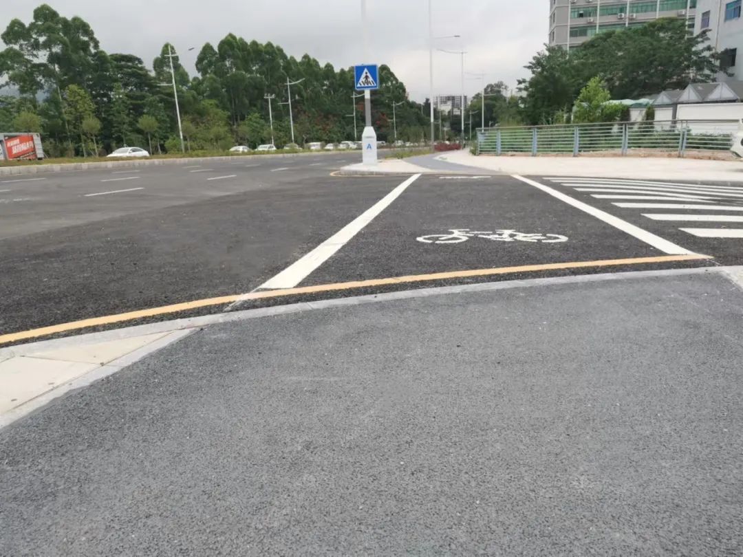 观天路项目坚持以人为本的规划理念,注重路口慢行优先设计,在支路路口处把人行横道区域抬高,保证路口路面与人行道零高差。项目在全线设置非机动车道,全面打造景美路畅的慢行出行环境,极大提高了居民“绿色出行”意愿。