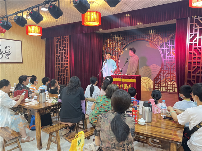 一方面走出去,另一方面,广兴书场开展亲子曲艺体验,传统文化研学、曲艺研学等项目,作为研学游的一站,让不同学校的孩子们直接来到这里体验山东曲艺文化。
