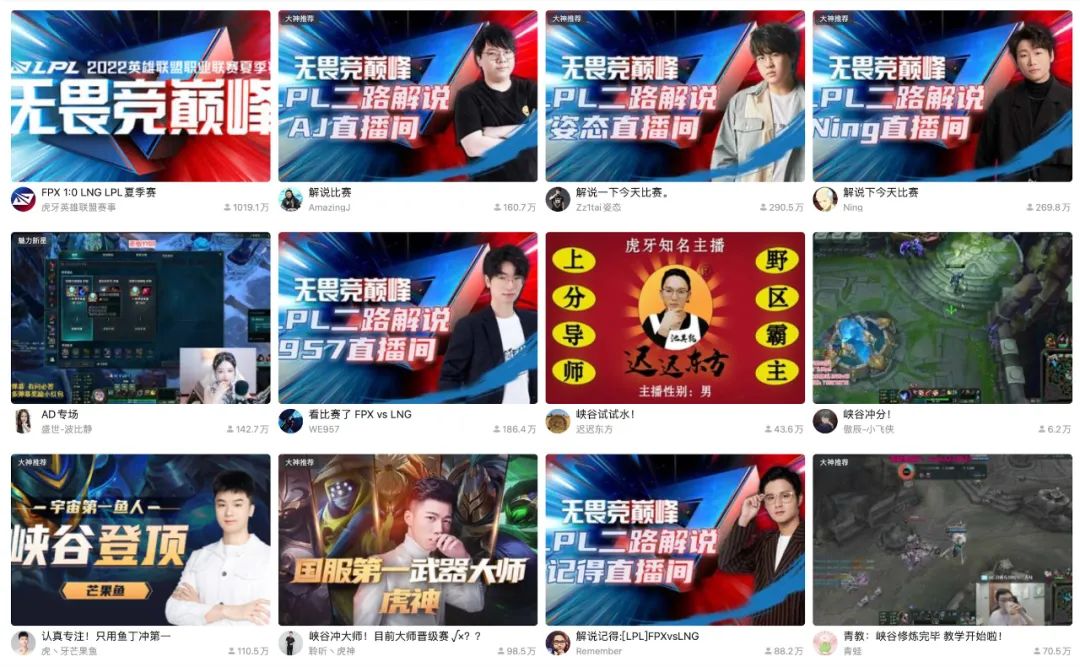 如果你在下午五点后打开虎牙直播的英雄联盟版块,就会发现排在前几位的房间几乎都是LPL赛事相关直播间。官方主流赛事直播间打头,后面跟着一长串各家主播的二路解说直播间:Zz1tai姿态、Ning、WE957、AmazingJ、Letme严君泽、Remember……