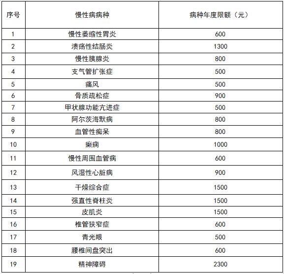 (一)省本级新增门诊慢性病病种。在原省本级38种慢性病基础上增加19种:1.慢性萎缩性胃炎,2.溃疡性结肠炎,3.慢性胰腺炎,4.支气管扩张症,5.痛风,6.骨质疏松症,7.甲状腺功能亢进症,8.阿尔茨海默病,9.血管性痴呆,10.癫痫,11.慢性周围血管病,12.风湿性心脏病,13.干燥综合症,14.强直性脊柱炎,15.皮肌炎,16.椎管狭窄症,17.青光眼,18.腰椎间盘突出,19.增加门诊慢性病病种内涵。将原省本级门诊慢性病中的“精神分裂症”修改为“精神障碍”,其内涵包括“精神分裂症,分裂情感性障碍,偏执性精神病,双相情感障碍,癫痫所致精神障碍,精神发育迟滞伴发精神障碍”。