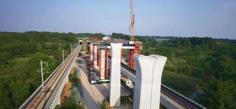 ↑轨道交通资阳线上跨既有18号线首片盖梁顺利浇筑完成