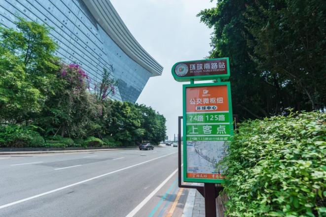 >>近日,环球中心公交微枢纽升级规范了标识标牌等设施。该微枢纽运用“B+R”绿色交通模式,实现“轨道+公交+共享单车”高效融合,有效缩短市民换乘时间。在环球中心四个方向的出口、地铁出入口均设置有前往微枢纽起始站点的醒目导视牌,市民能明晰换乘路线,节约换乘时间。