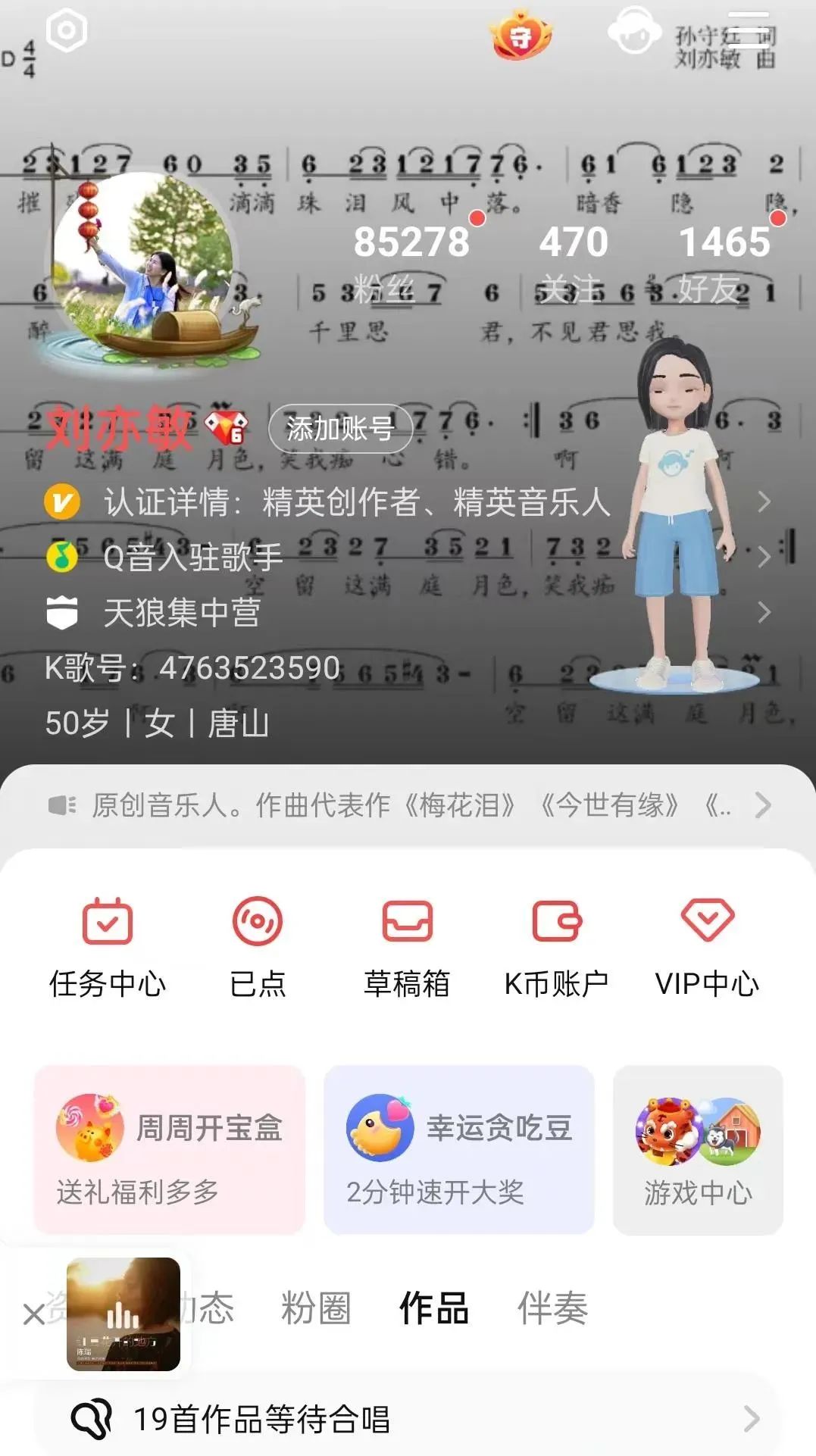 除了词曲创作之外,刘亦敏还非常热衷歌曲演唱,并在网上和广大网友们互动。