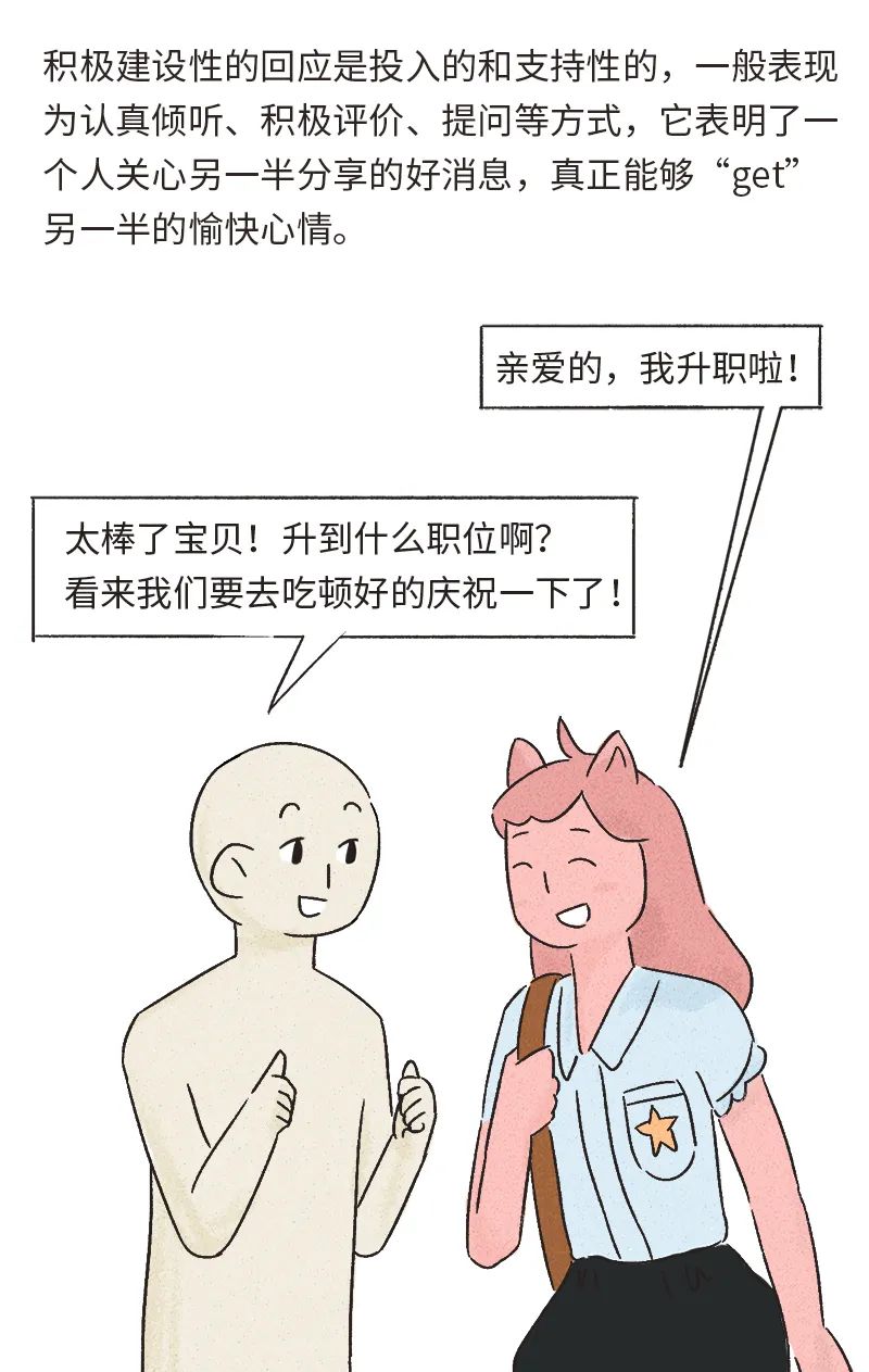 1. 以积极建设性的方式回应(Active-constructive Responding)对方分享的好消息。