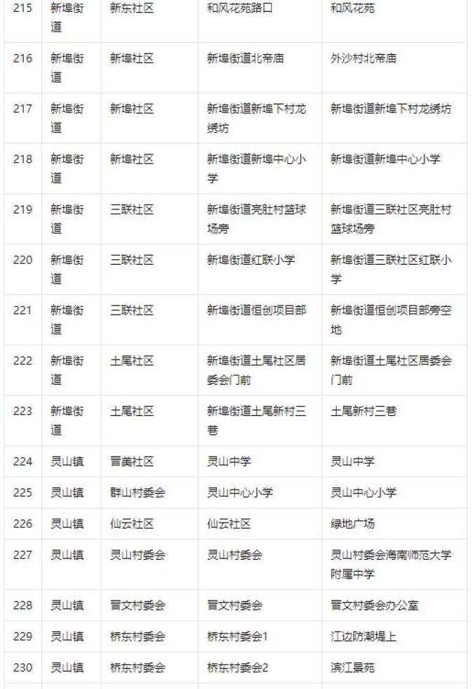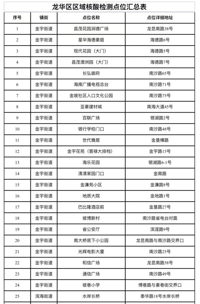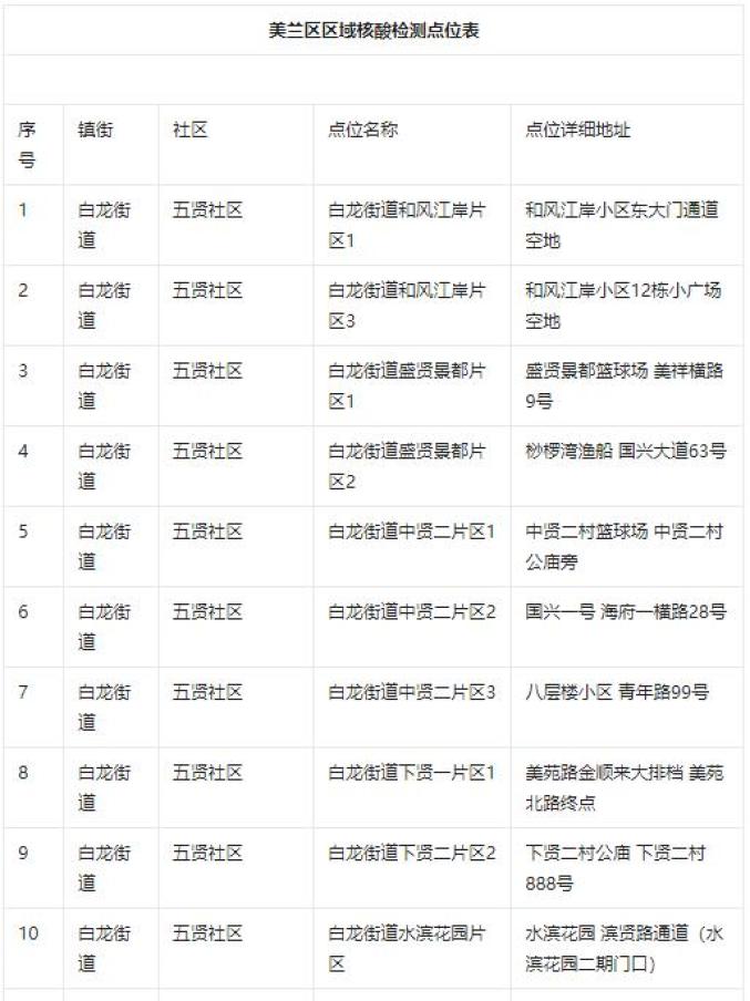 2.采样地点:美兰区区域核酸采样点(详见以下表格)